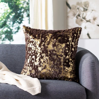 Layered with texture, this dramatic accent pillow is covered in a luxurious low pile faux fur polyester fabric adorned with frosty platinum and gray circles that morph into an abstract motif. Use this design for a touch of glamour on sofa, bed or chaise. Care Instructions: Pillows tend to flatten during transit, but these tips should help you get that pillow into its fluffiest shape quickly!Once unpacked, gently knead the pillow to help loosen the fibers. Throw the pillow in a dryer on a low tumble setting. The most important tip is to include a sock stuffed with a tennis ball to help “beat” the pillow into its fluffy form. Remove from the dryer, and proudly display your new piece of couch art!